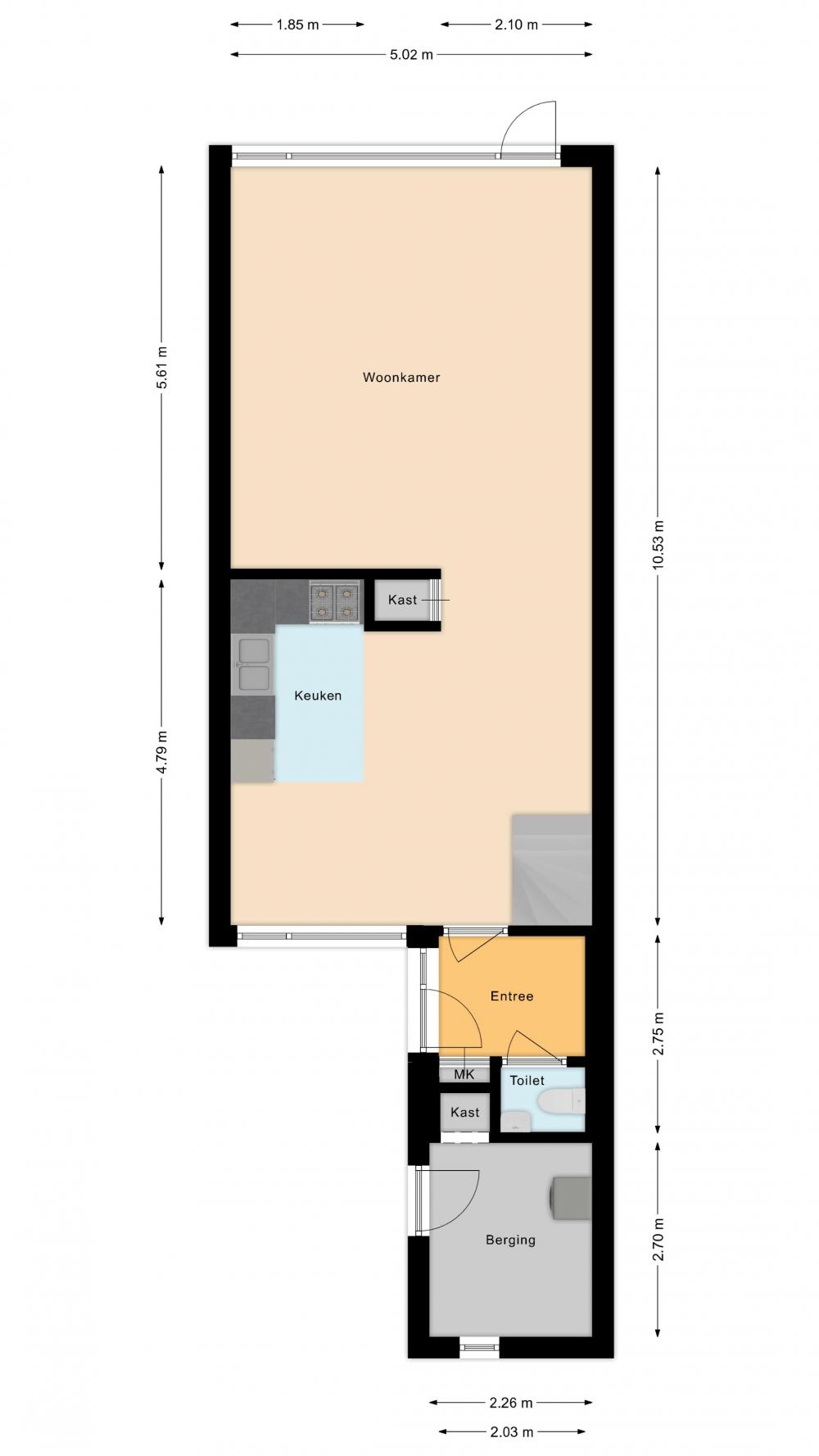 Lovely three-storey family home with a front garden and a north-east facing rear garden approximately 20 metres deep, four bedrooms and a storage room at the front. Situated on approximately 190 m² of private land.