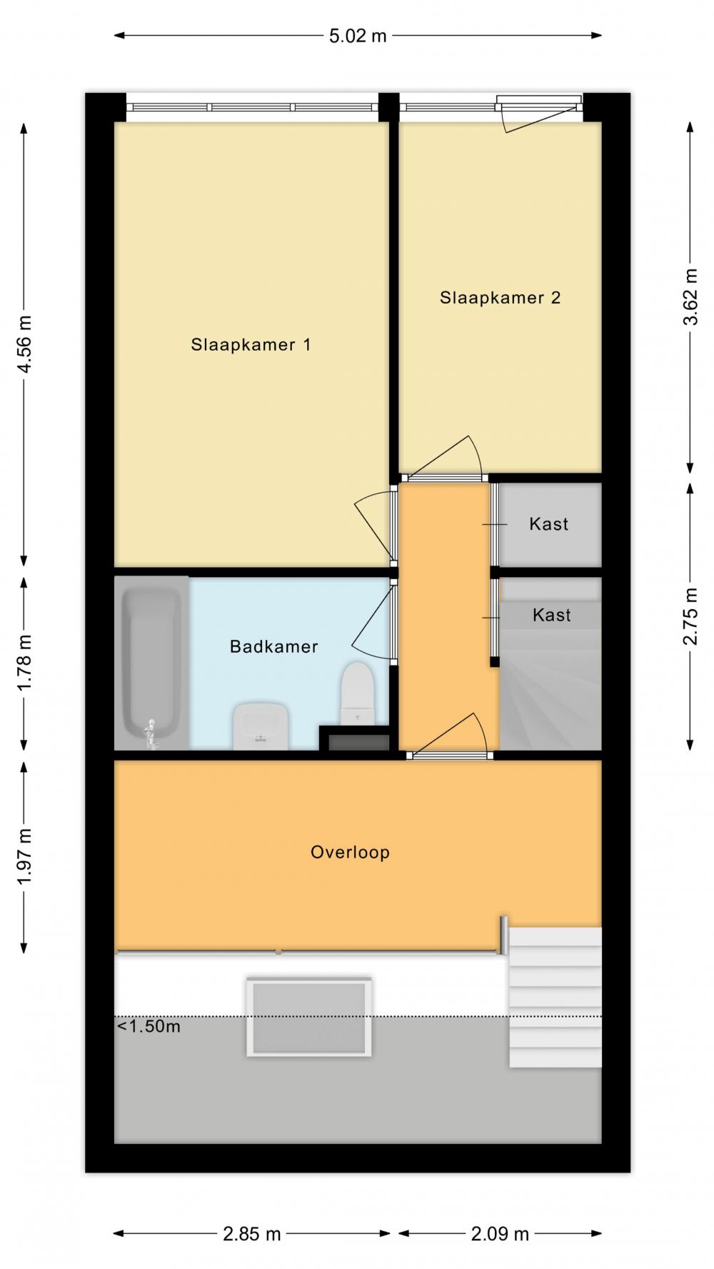 - Landing with built-in cupboard, central heating boiler (Remeha 2016) and possibilities for creating a second bathroom.