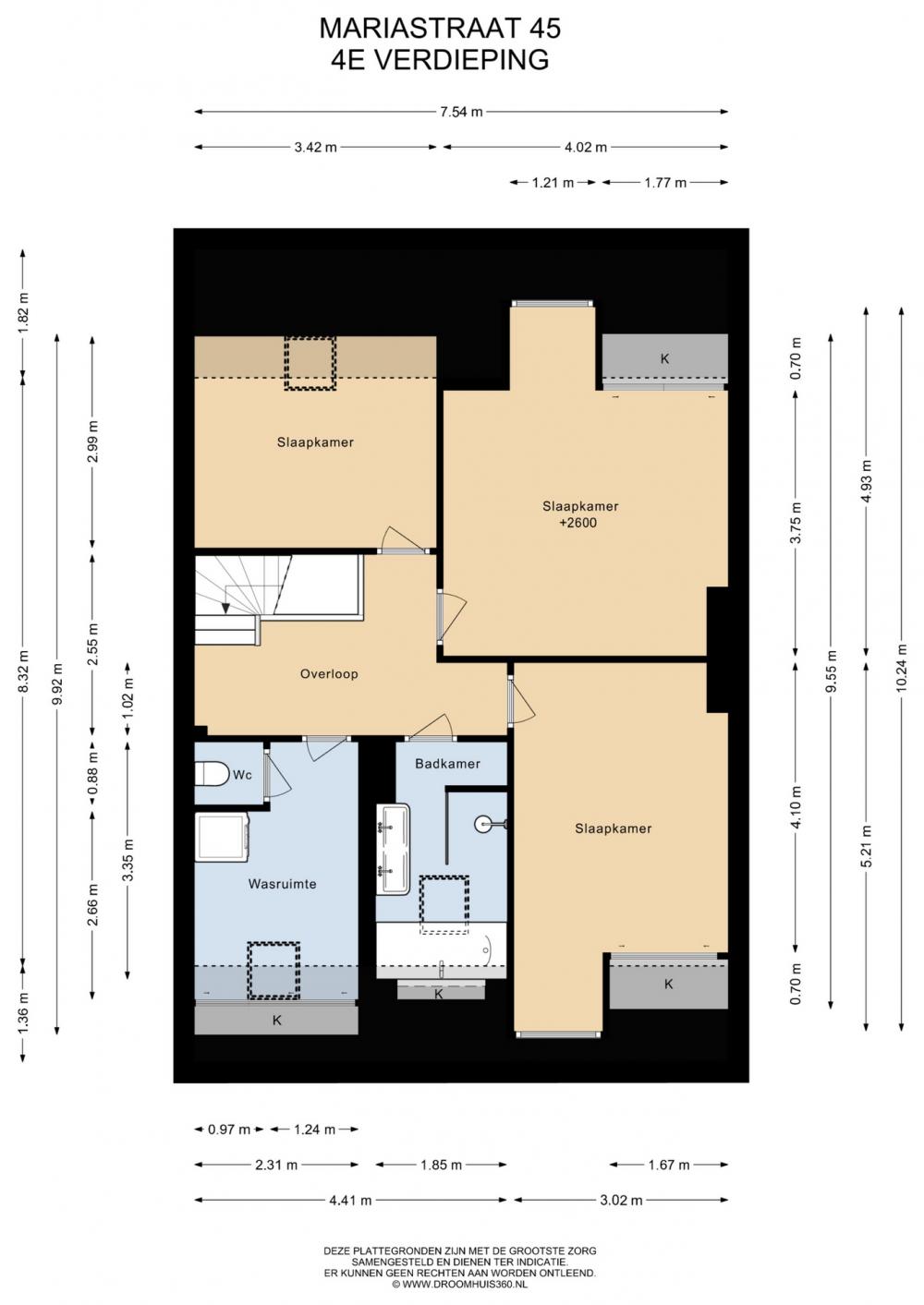 Overloop met toegang tot 3 ruime slaapkamers en een 4e (slaap)kamer, die is voorzien van een 2e toilet en wasmachine-/drogeraansluiting. De 4 kamers maken deze woning ideaal voor een groter gezin, met mogelijkheden voor een thuiswerkplek of logeerkamer. De vernieuwde, luxe badkamer (2022) is compleet uitgerust met een ‘whirlpool’-ligbad, inloopdouche, wastafelmeubel en opstelplaats voor de CV-ketel. Er is vanuit de overloop toegang tot de vliering, die officieel eigendom is van de VVE.