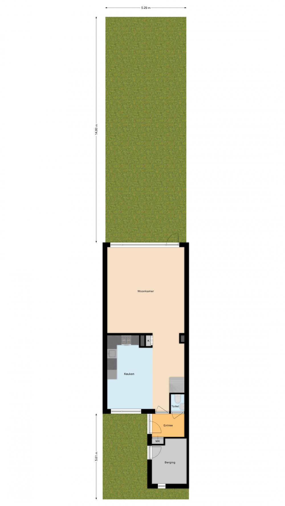 • Kadastraal is achtertuin ca. 13 meter diep.