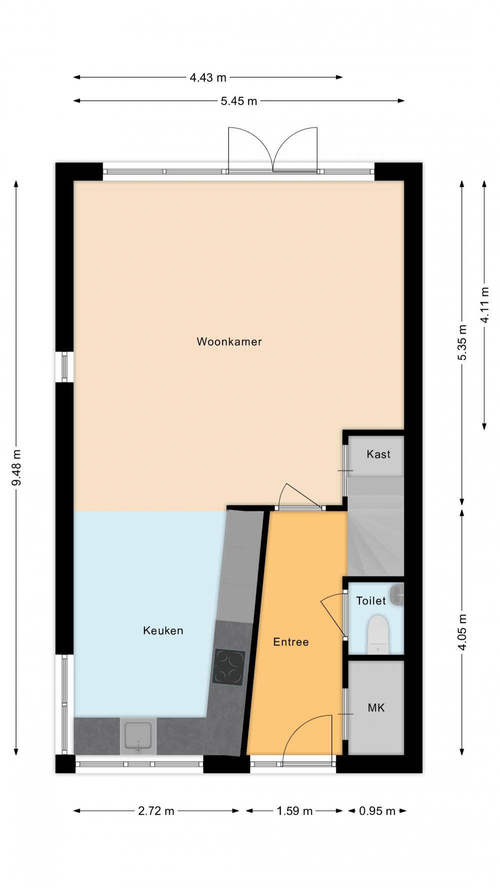 - Entree van de woning met een ruime hal, voorzien van garderobe, meterkast en een modern toilet.